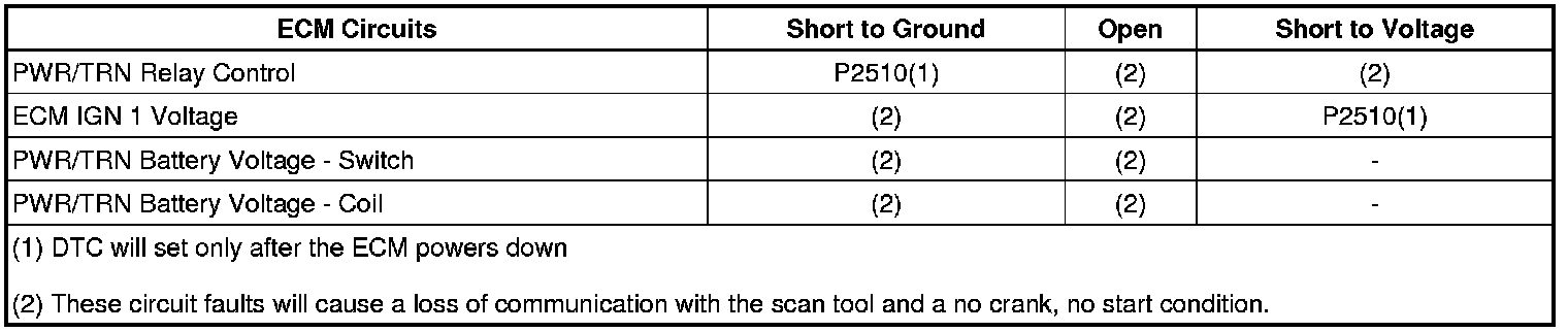 If the relay fails to close, the engine will not crank. Communication will not be available with the use of a scan tool.