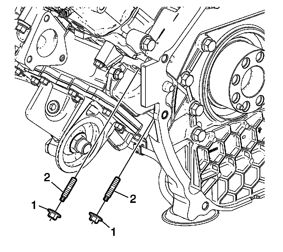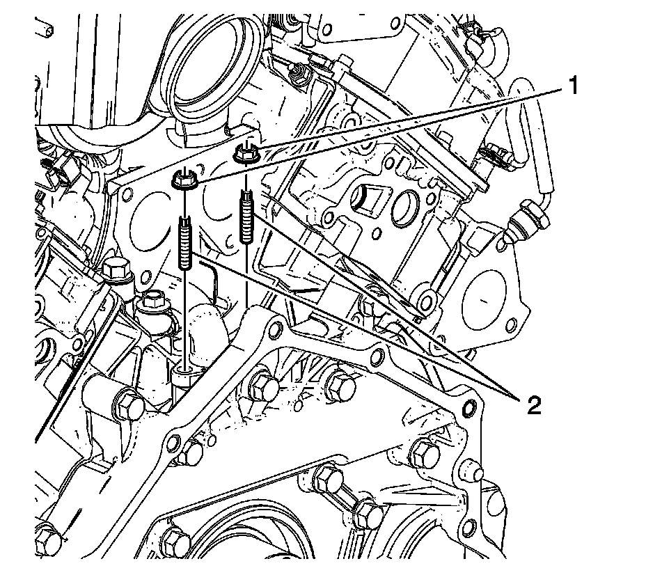 7. Install the oil cooler adapter studs (2) and tighten to 8 Nm (71 lb in).