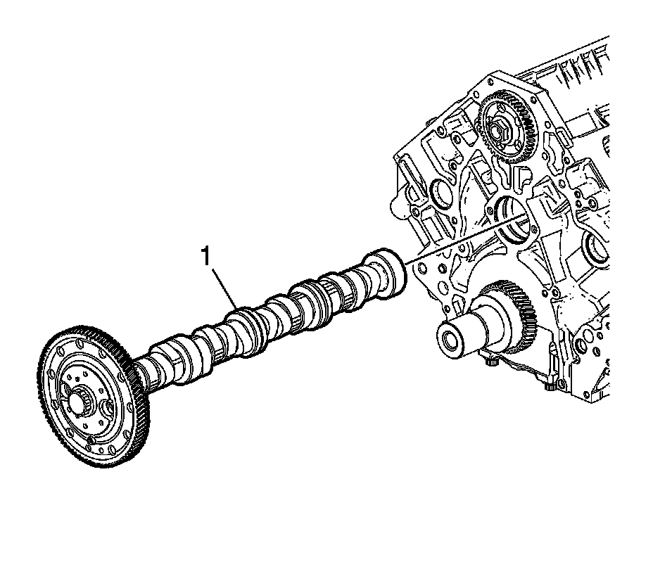 8. Remove the camshaft (1) with the camshaft gear attached.