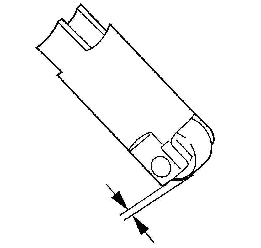 1. Push the roller towards the roller lifter body and measure the distance between the bottom of the roller and the roller lifter body. The production value is 0.989-1.0 mm (0.0389-0.0394 in) and the service limit is 0.9 mm (0.0354 in).