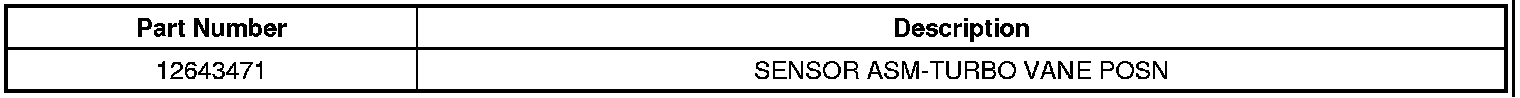 If turbochargers, GM P/N 12635325 or 12635167 are being replaced, the original turbo vane sensor should be removed and replaced with the new style sensor, GM P/N 12643471. Turbochargers that are supersessions to these part numbers will have the new style vane position sensor and no action is necessary.