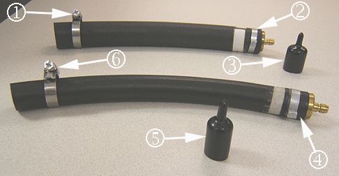 5. Install the Cap Plug(s) (1) and tighten the clamp(s) (2) on the EGR cooler hose barb(s) as shown.