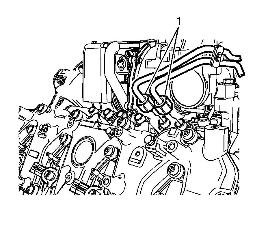 4. Remove the fuel high pressure pipes - pump to rail. Refer to Fuel High Pressure Pipe Replacement - Pump to Rail (Fuel High Pressure Pipe Replacement - Pump to Rail).