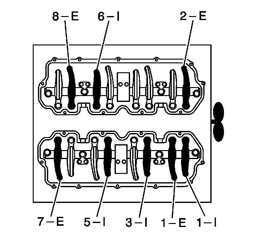 4. Adjust the valve lash to 0.3 mm (0.012 in). Refer to Valve Clearance Adjustment Specifications (Adjustment Specifications) to determine which valves that can be adjusted when the engine is at Top Dead Center. Tighten the valve lash lock nut to 22 Nm (16 lb ft).