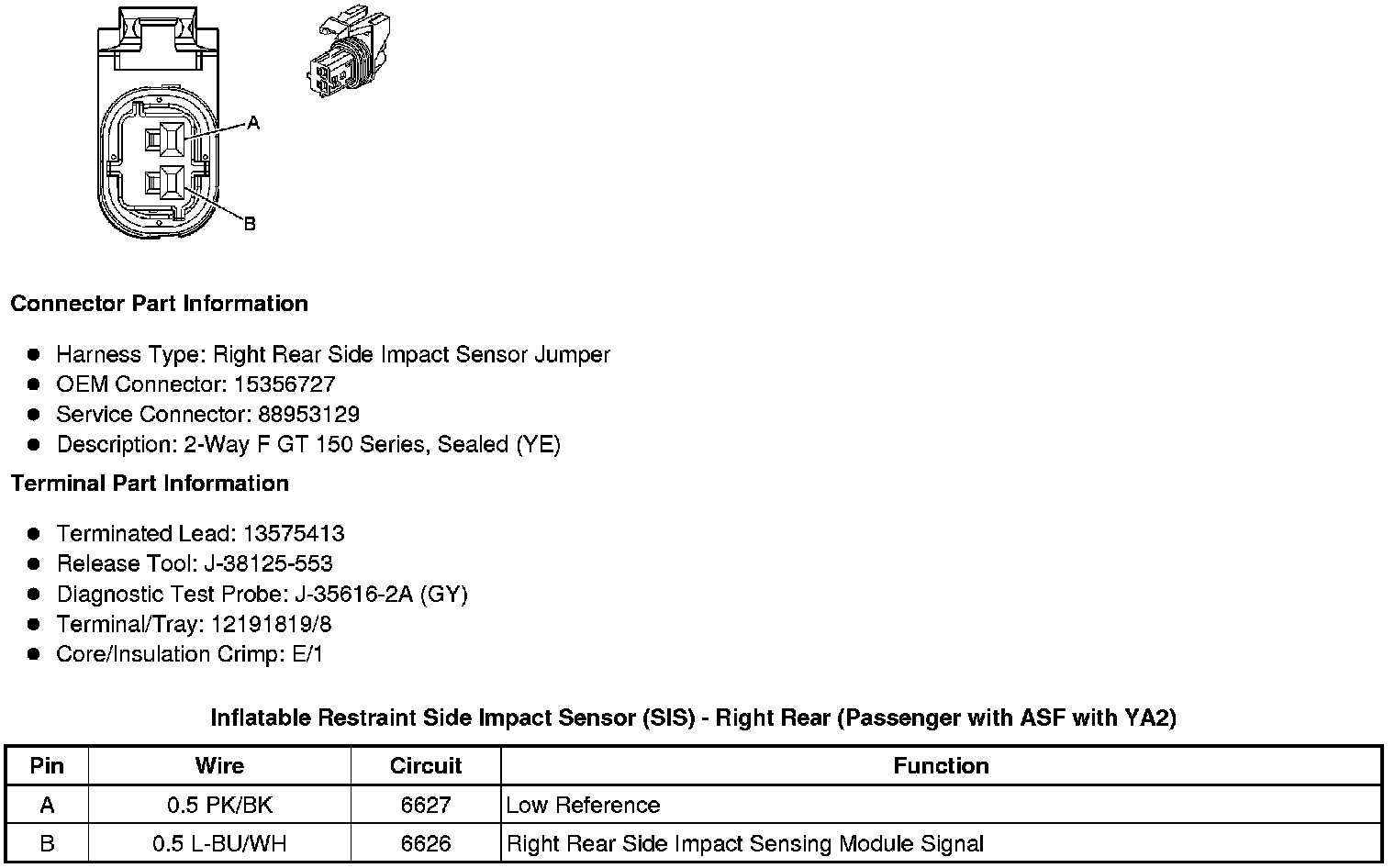 Inflatable Restraint Side Impact Sensor (SIS) - Right Rear (Passenger with ASF with YA2)