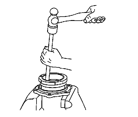 9. Using a hammer and a brass drift, remove the outer pinion bearing cup.