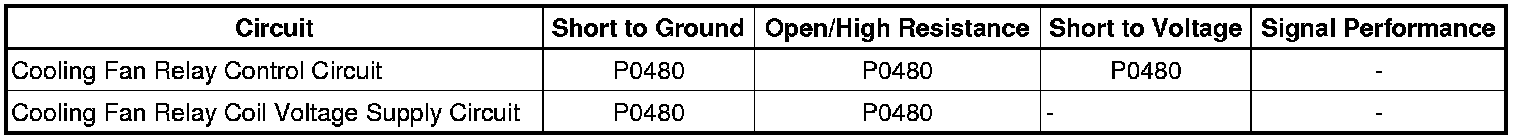* An improper voltage level has been detected on the cooling fan relay control circuit.