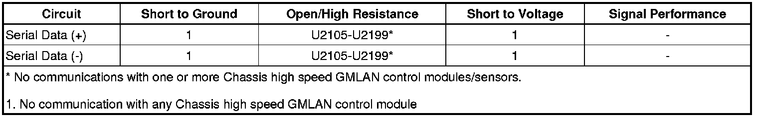* Open, short to ground, or short to voltage on the serial data circuits.