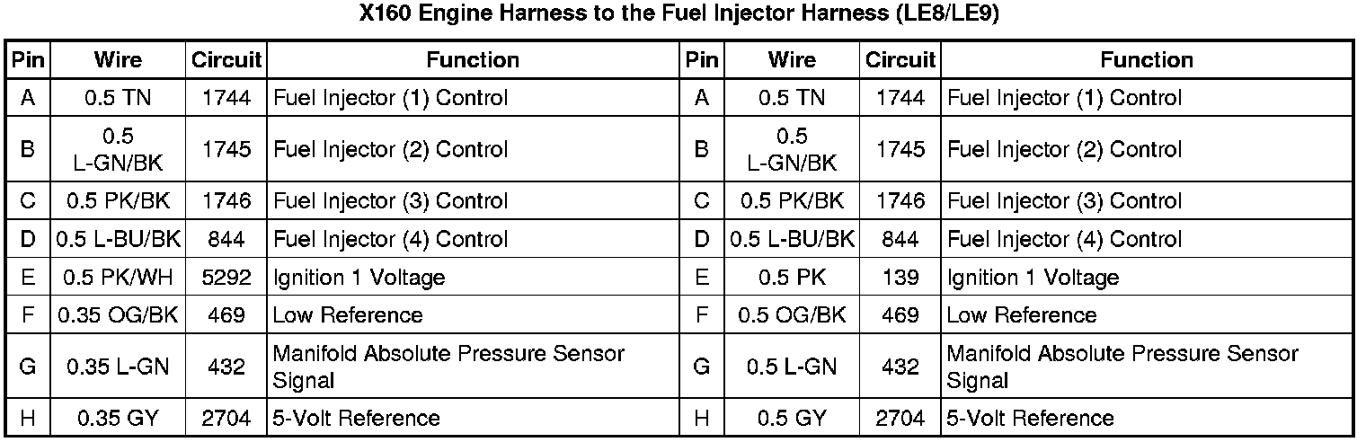 X160 Engine Harness to the Fuel Injector Harness (LE8/LE9)