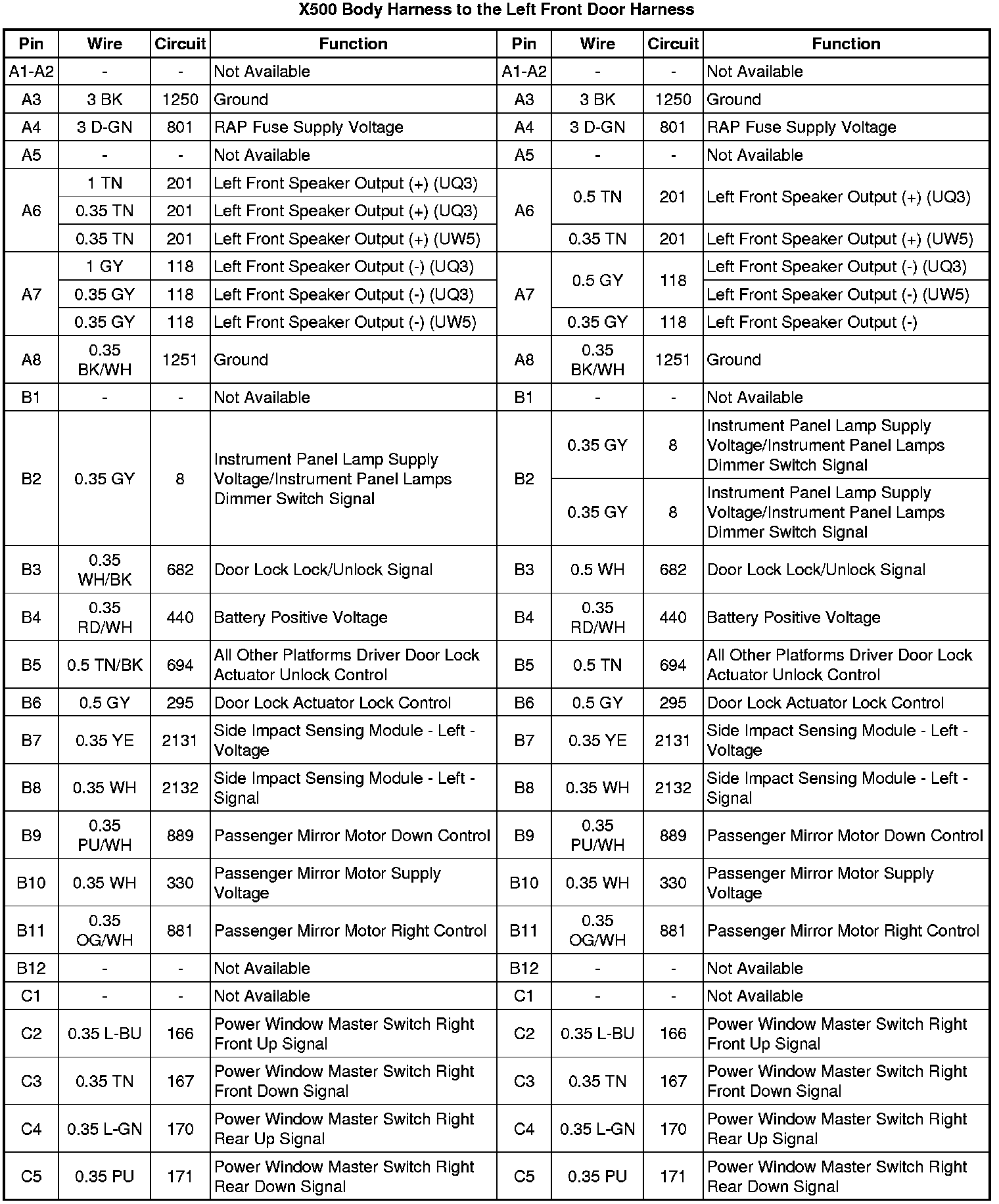X500 Body Harness to the Left Front Door Harness
