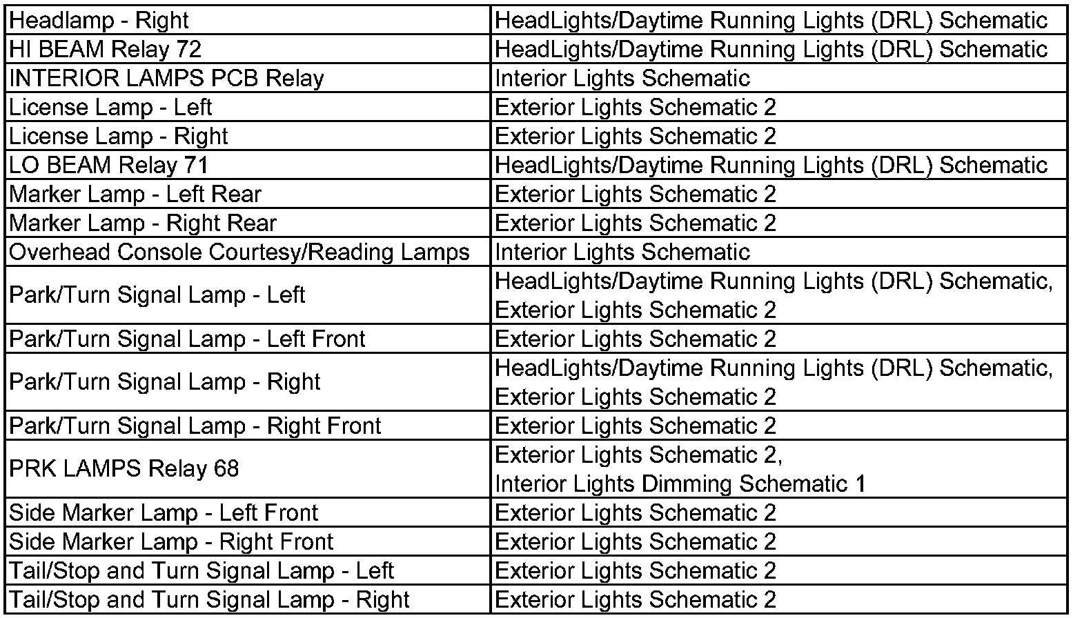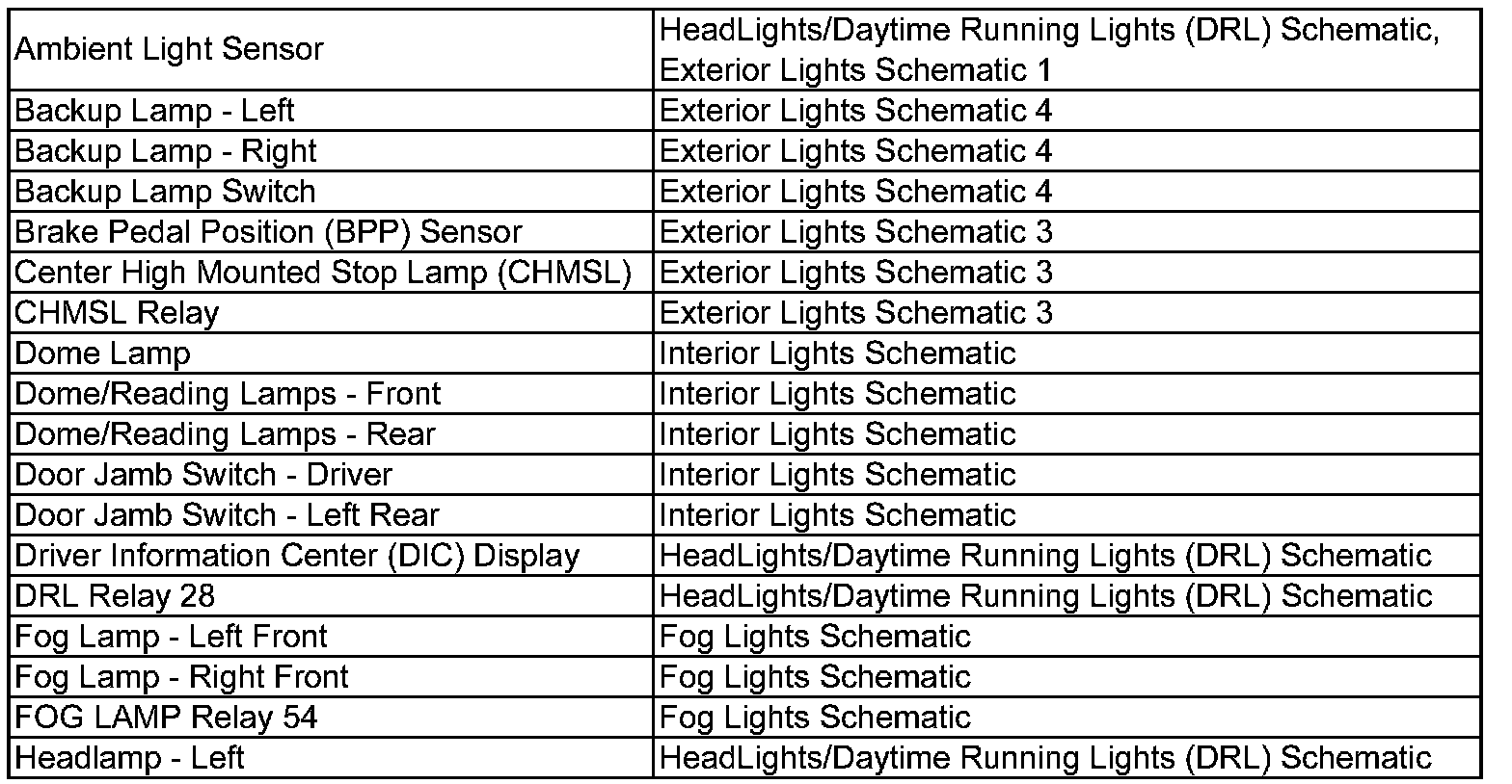 Wiring Schematic Index