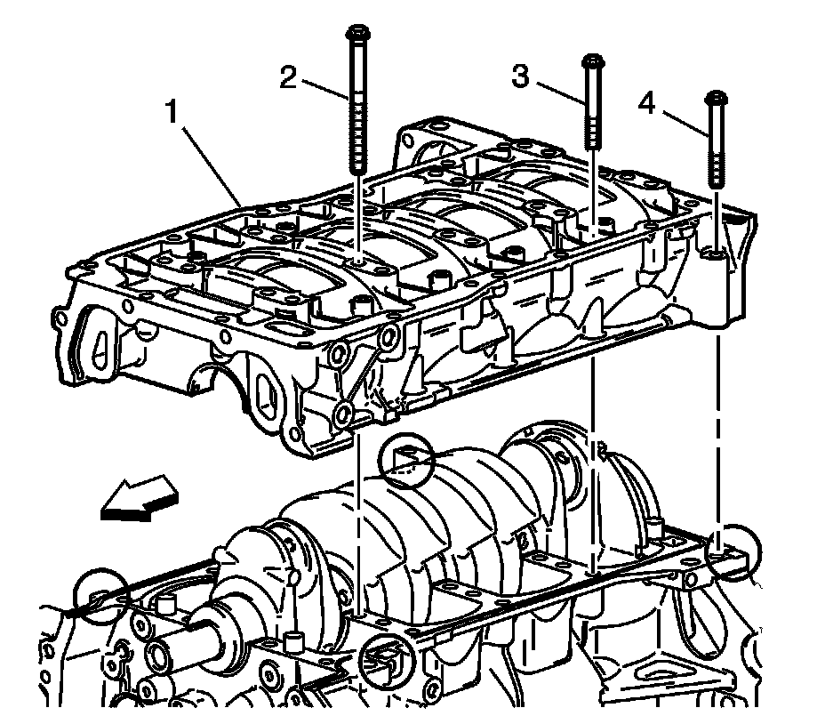 Note: Do not forget the 2 outside rear bolts (4).