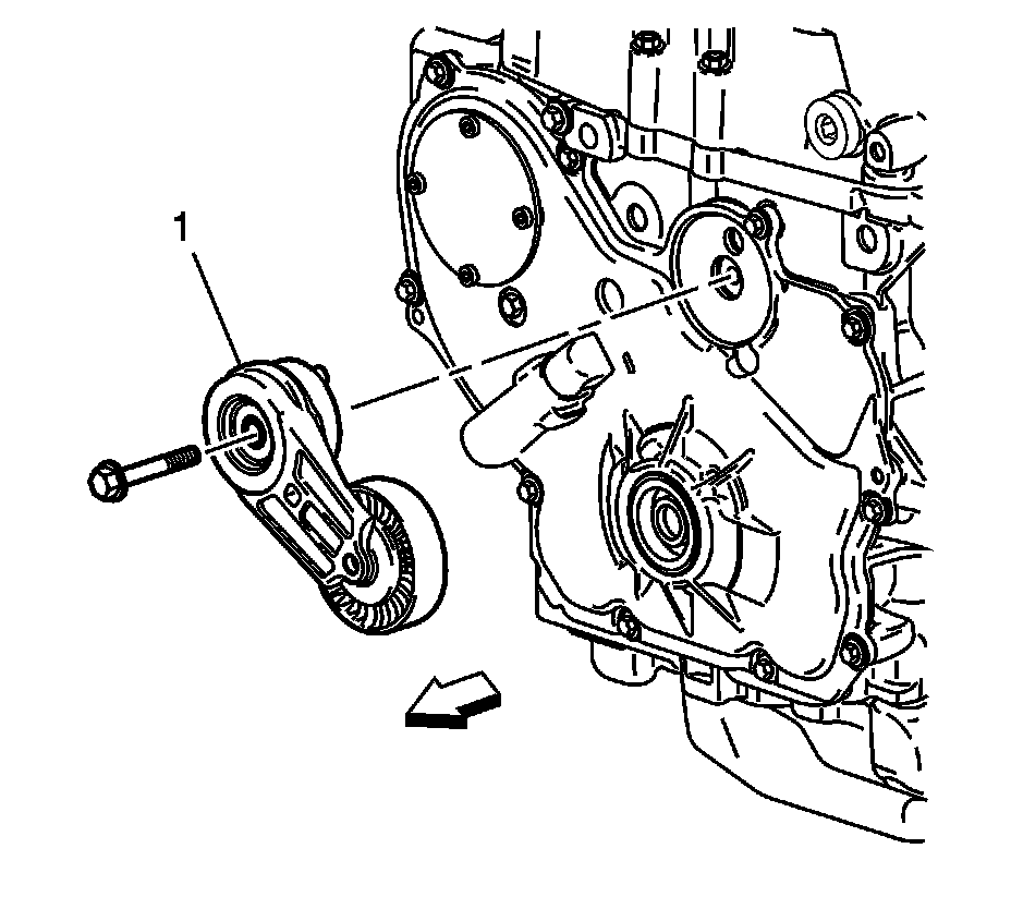 4. Install the accessory drive belt tensioner (1).