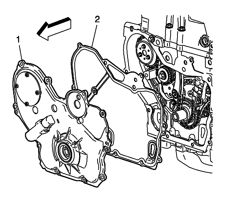 1. Install the engine front cover (1) with a new gasket (2).