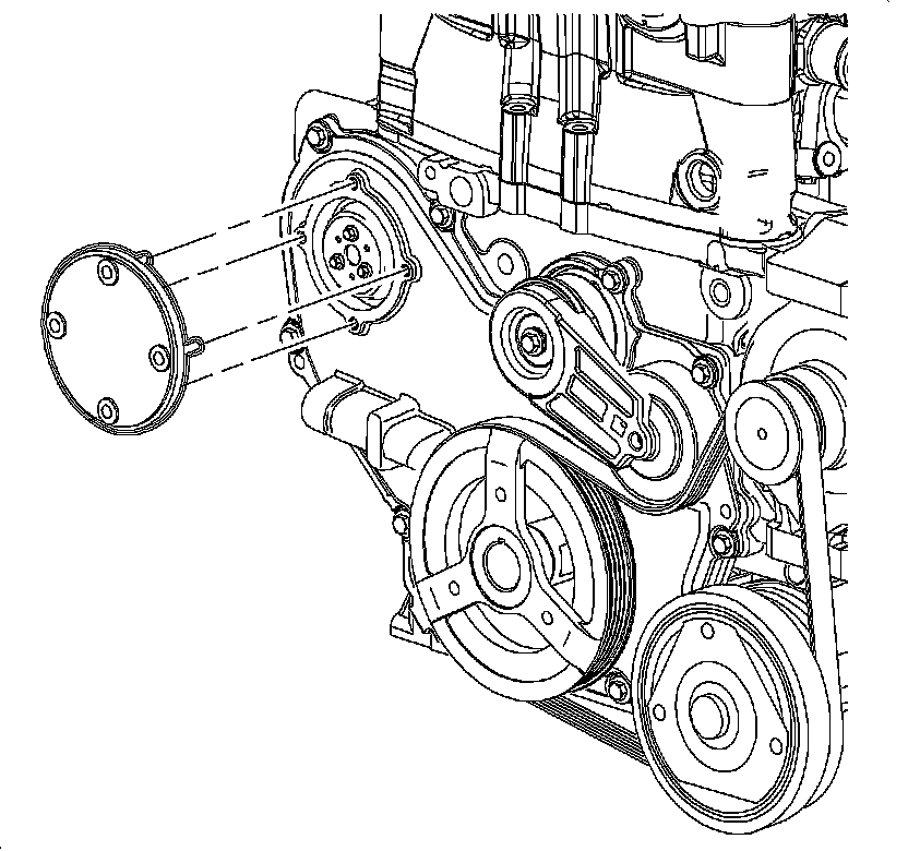Note: Be sure to remove both water pump bolts from the front of the engine block.