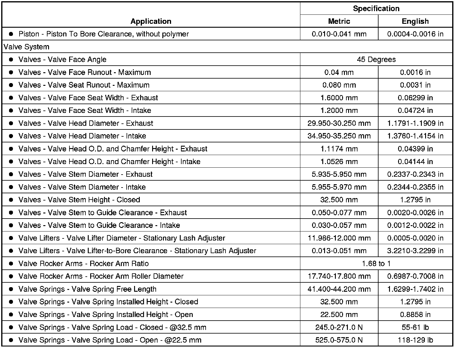 Engine Mechanical Specifications