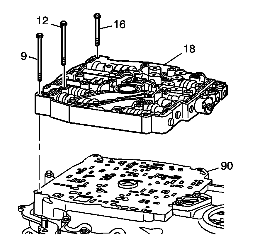 Remove the remaining twelve bolts (9, 12 and 16) from the control valve body assembly (18).