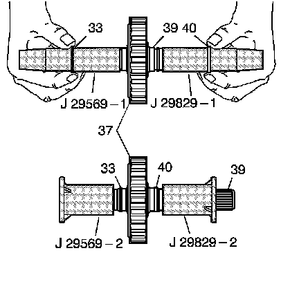 6. Repeat steps 3.1 through 3.6 with J 29829-1 - seal installer and J 29829-2 - seal sizer on the small splined side of the turbine shaft.