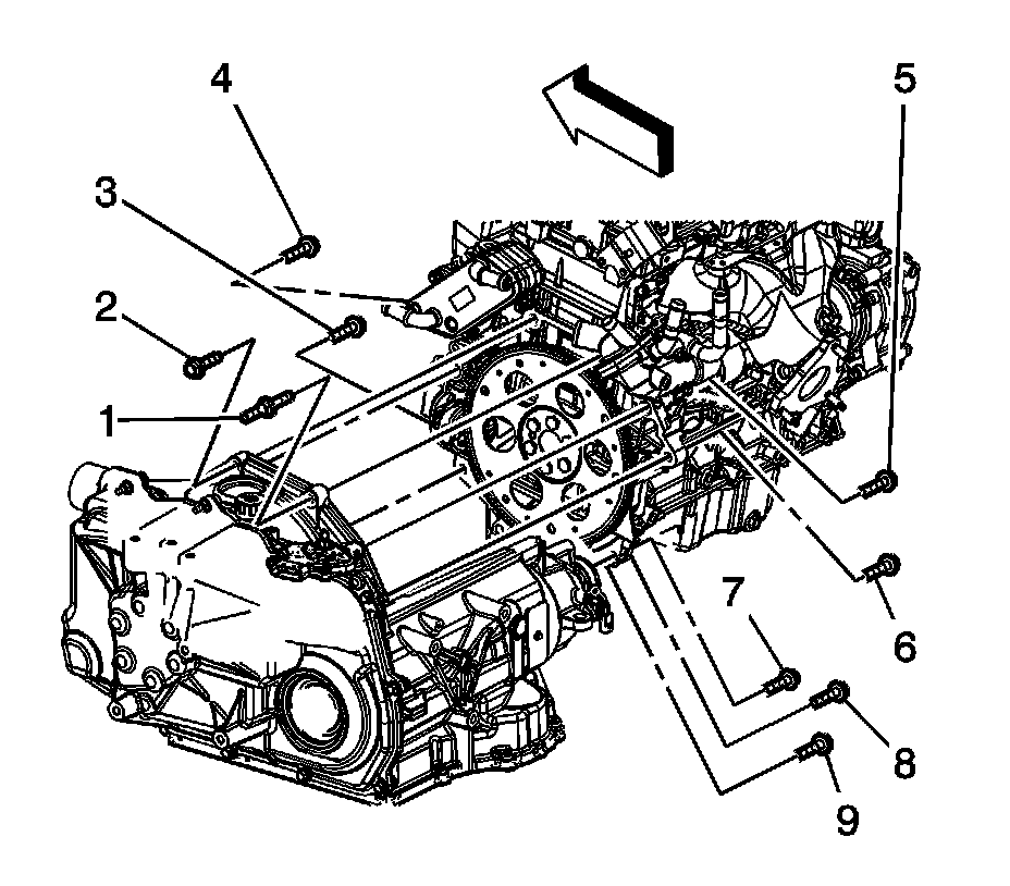 Tighten the torque converter bolts to 62 Nm (46 lb ft).