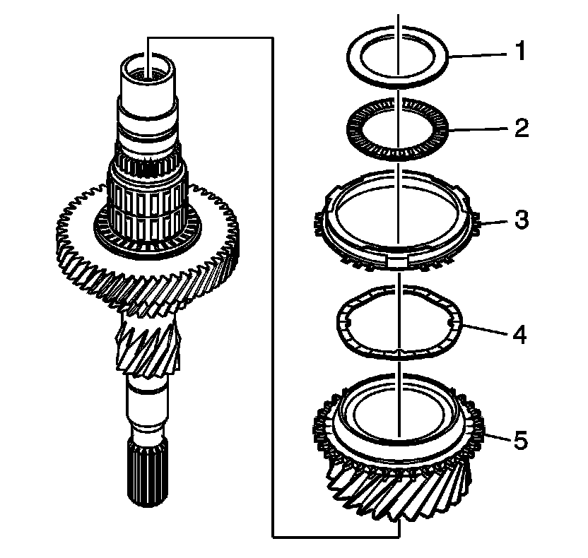 13. Assemble wavy washer (5) to the 4th gear (3) and install.