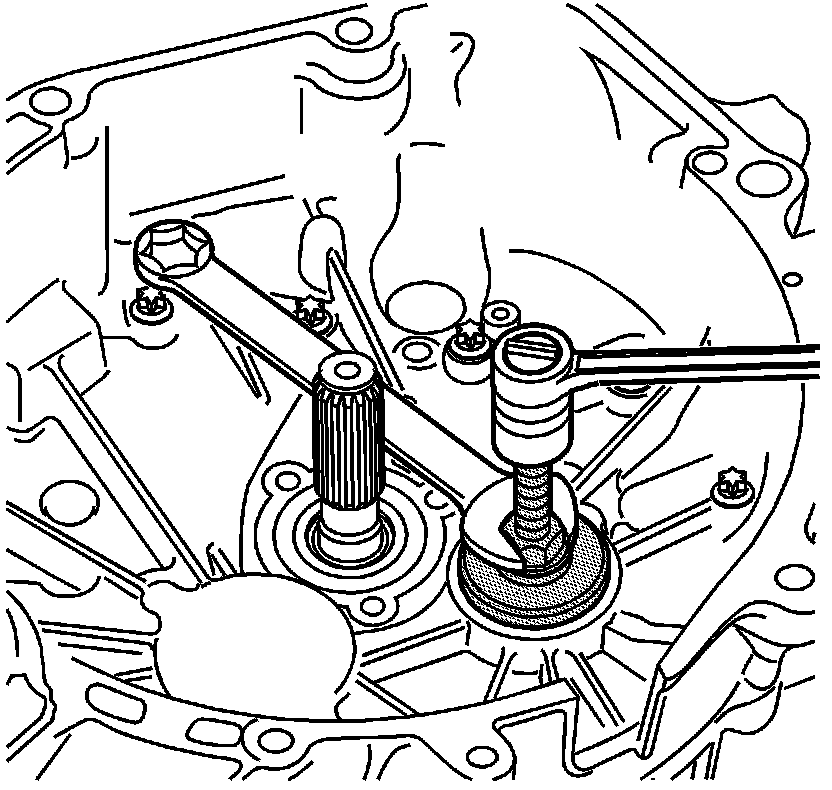 24. Install NEW input and output shaft bolts while holding the transmission into 4th and 5th gear in an upward direction and tighten the shaft bolts to 110 Nm (81 lb ft).