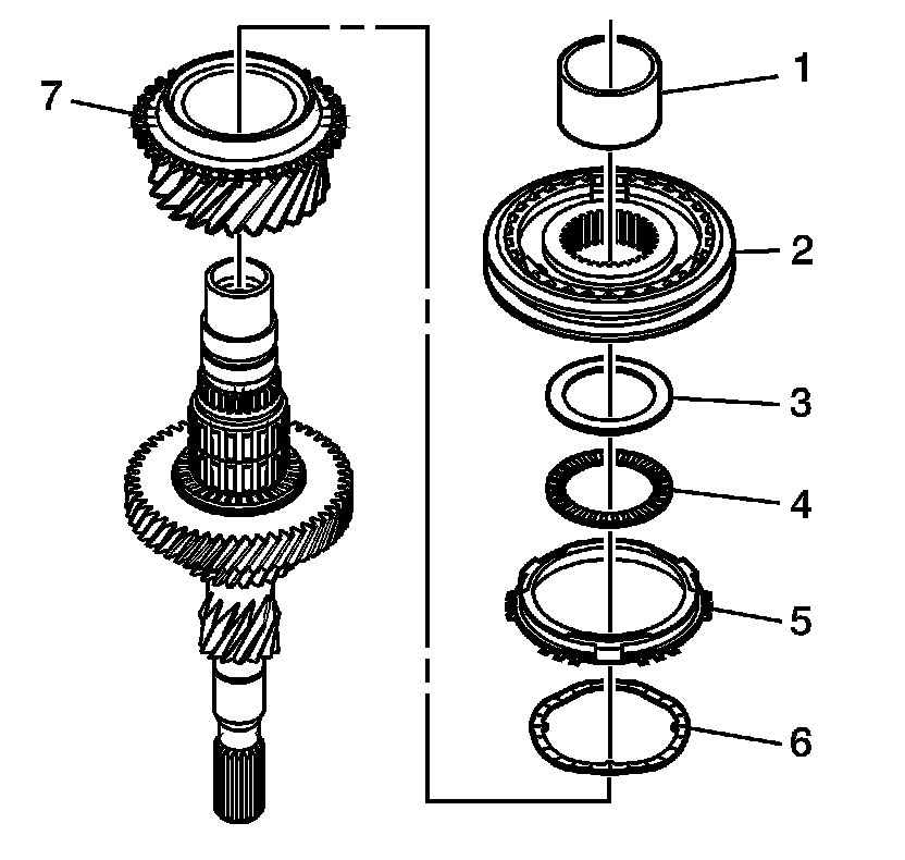 6. Remove the 4th gear blocking ring (6).