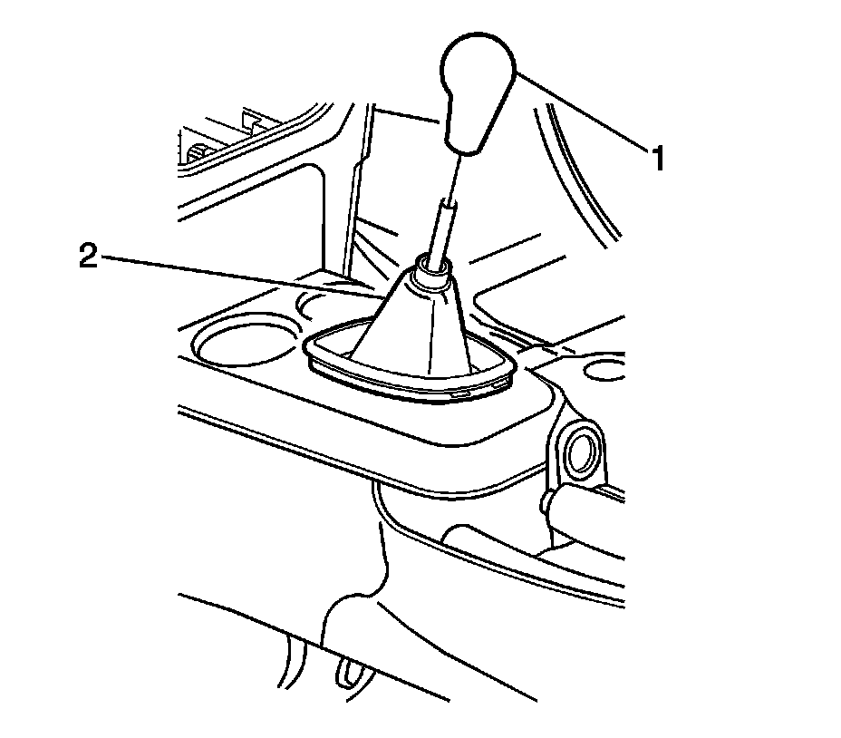 2. Install the shift control boot collar (2) to the shift control knob (1) and twist 1/4 turn to lock.