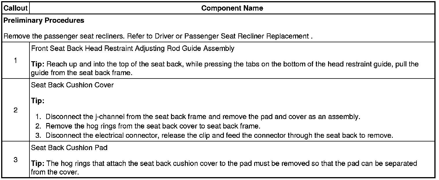 Driver or Passenger Seat Back Cushion Cover and Pad Replacement