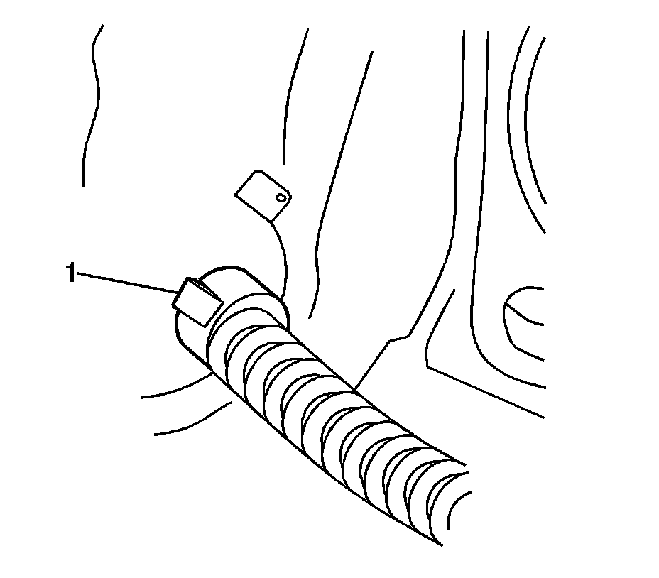 3. Install the rear park brake cable end fitting (1) to the drum brake backing plate.