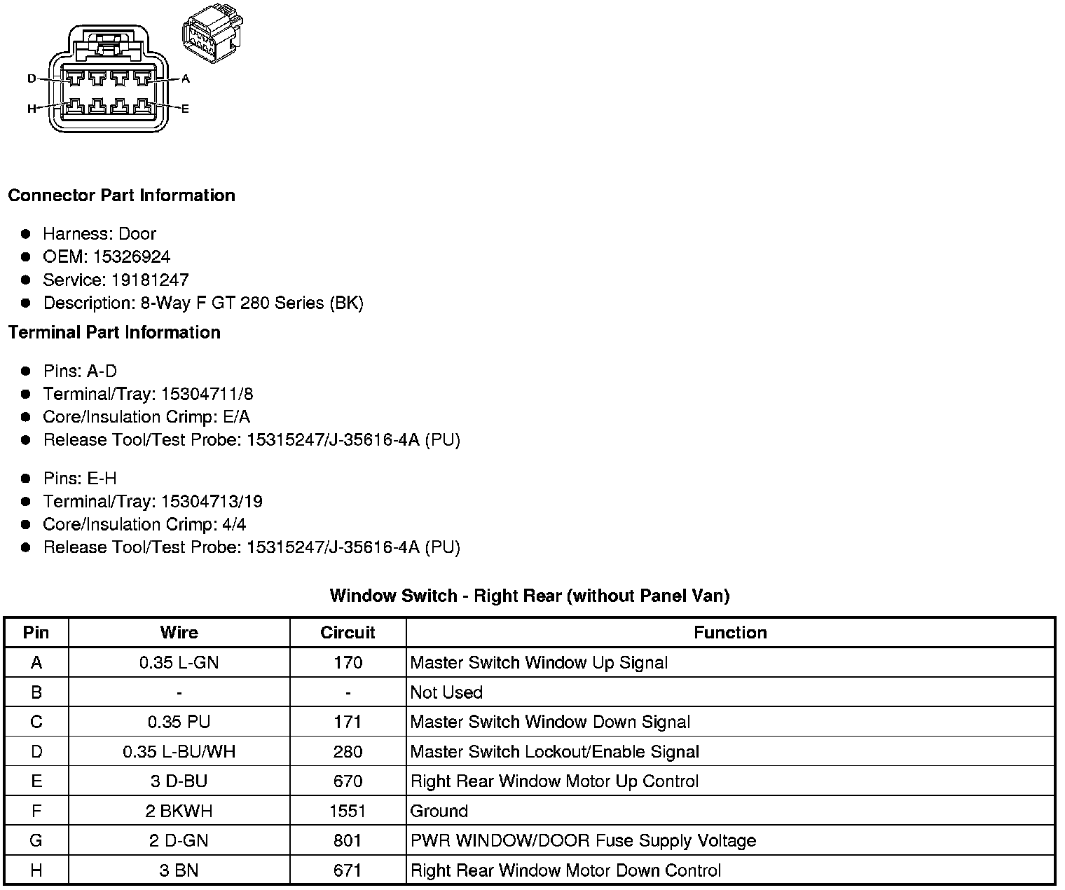 Window Switch - Right Rear (without Panel Van)