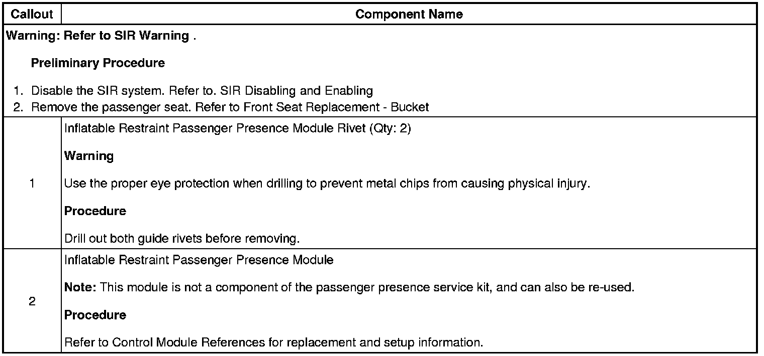 Inflatable Restraint Passenger Seat Suppression Module Replacement
