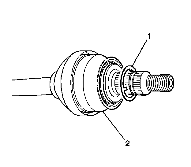 2. Install the washer (1) onto the front wheel drive shaft (2) as shown above.