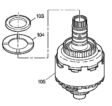 1. Remove the selective thrust bearing (103) and the thrust washer (104) from the input shaft of the direct and coast clutch assembly (105).