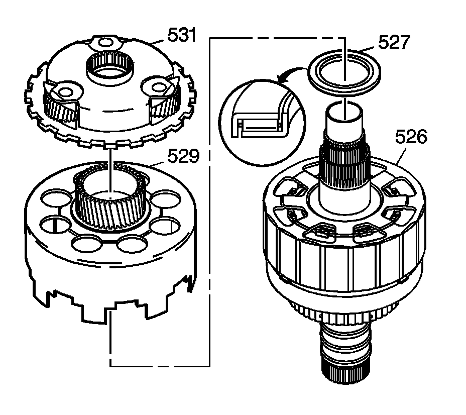 7. Remove the thrust bearing (527) from the reaction carrier shaft and shell assembly (526).