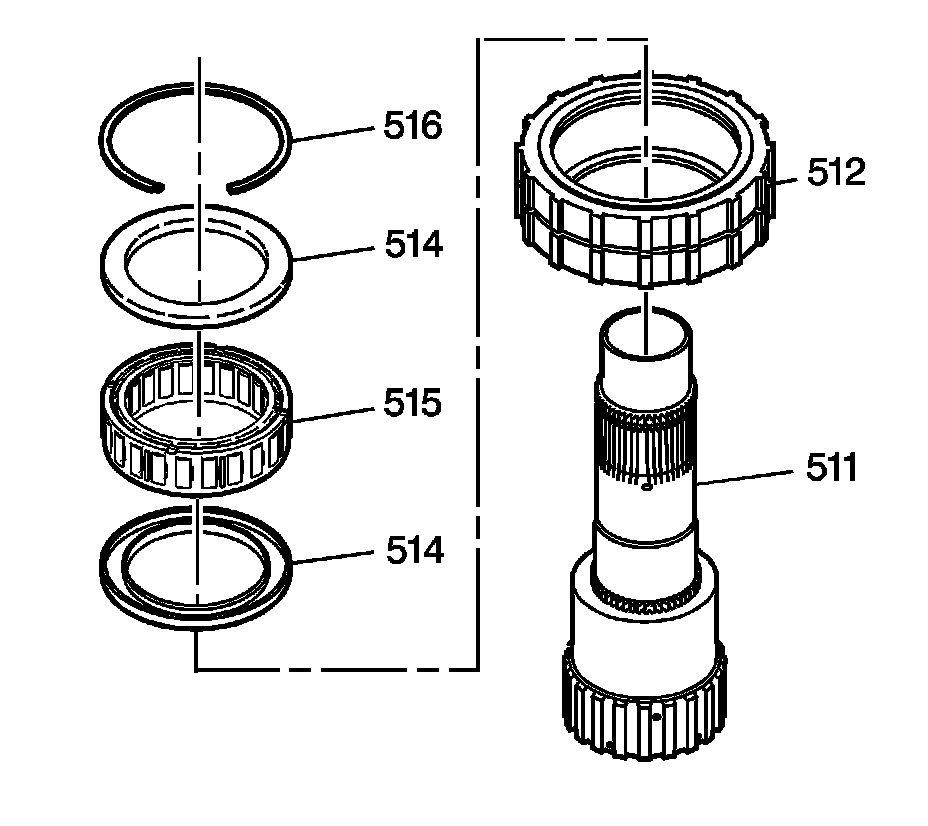 26. Remove the input sprag assembly (512 and 514-516) from the input sun gear shaft (511).
