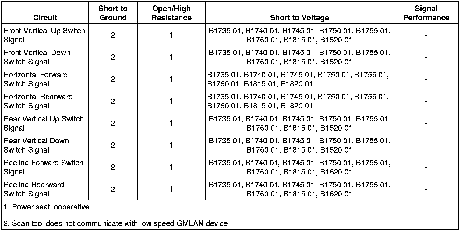 - Seat Assembly Rearward Switch Circuit Short to Battery