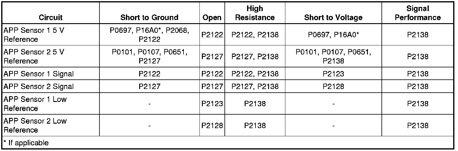 - Accelerator Pedal Position (APP) Sensor 1 Circuit High Voltage