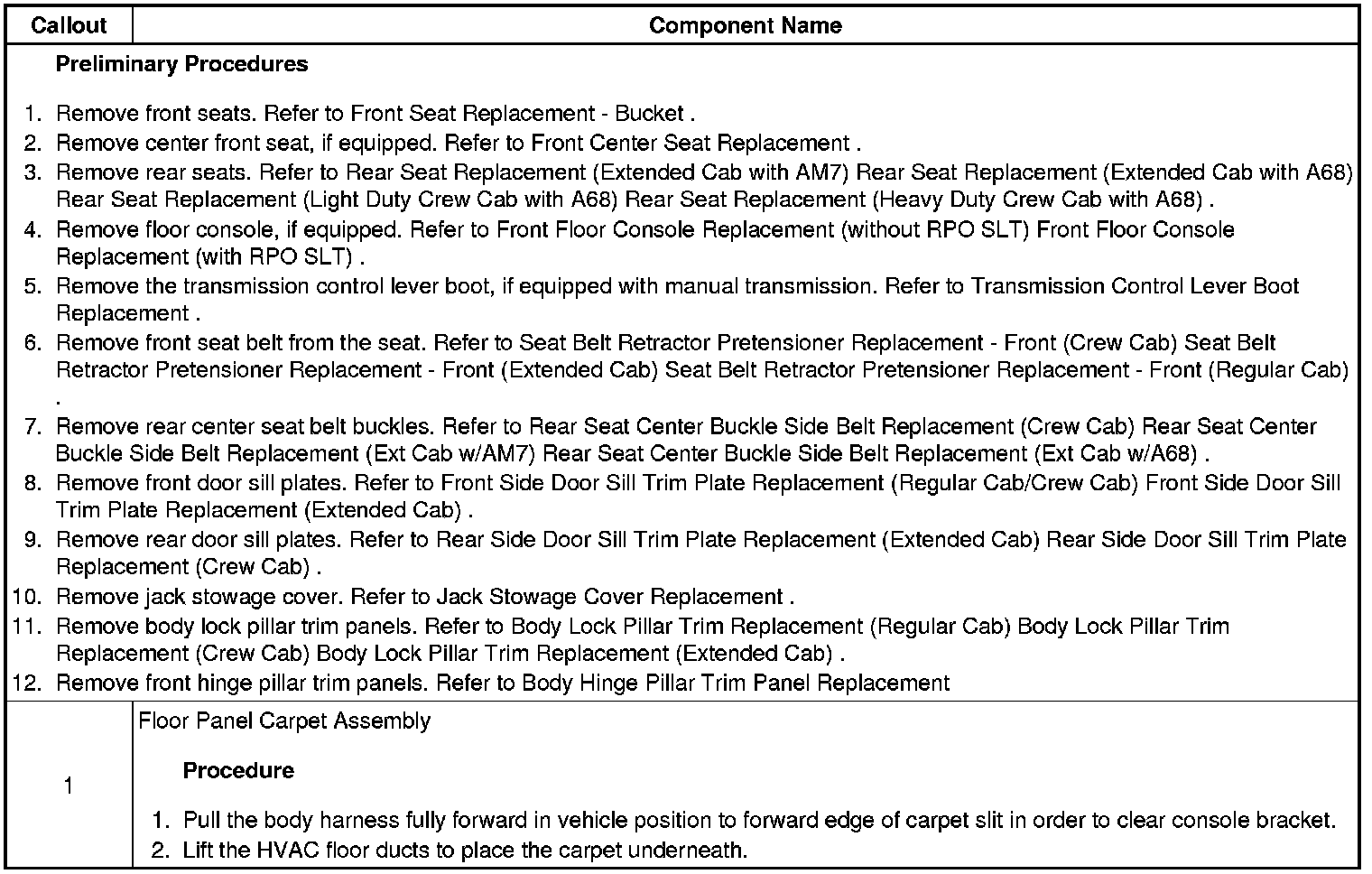 Front Floor Panel Carpet Replacement (Extended Cab)