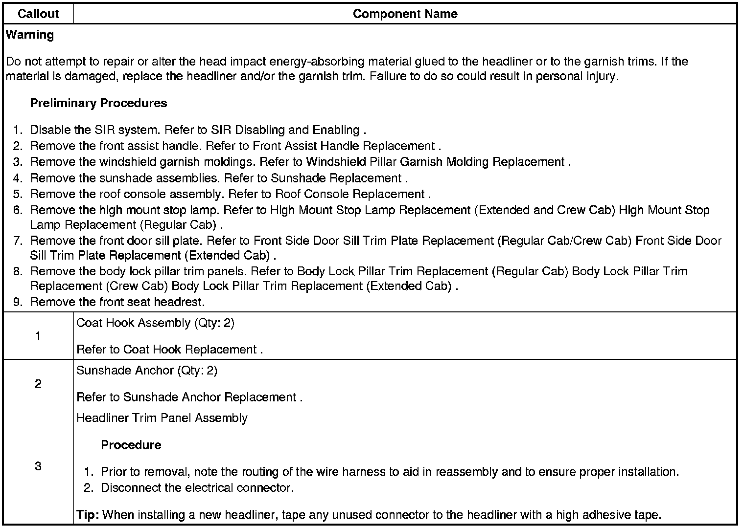 Headlining Trim Panel Replacement (Regular Cab)