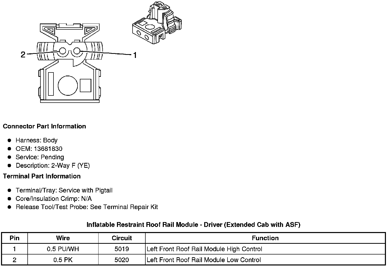 Inflatable Restraint Roof Rail Module - Driver (Extended Cab with ASF)