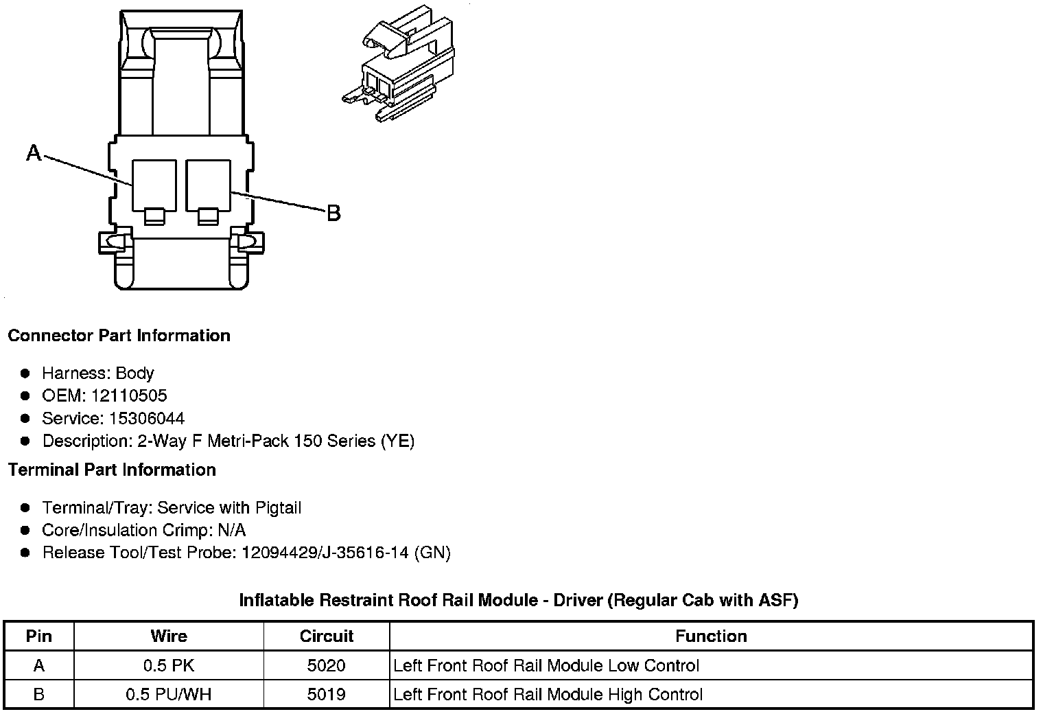 Inflatable Restraint Roof Rail Module - Driver (Regular Cab with ASF)