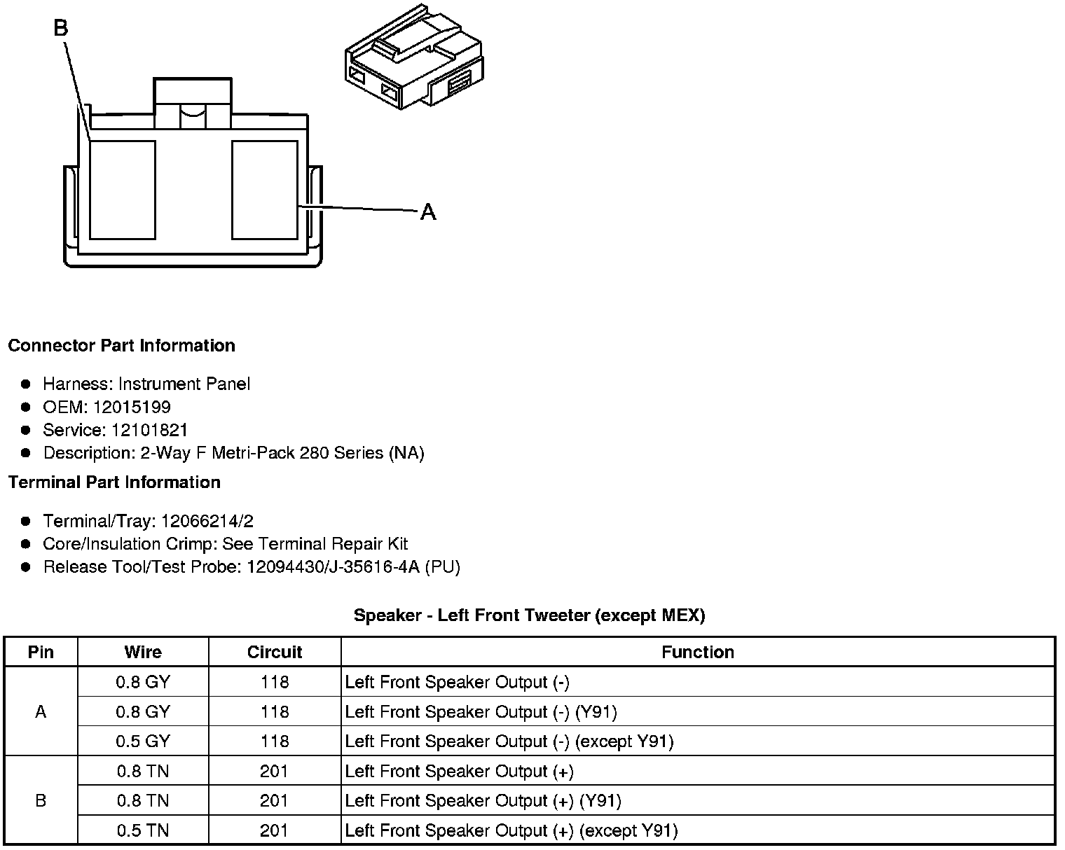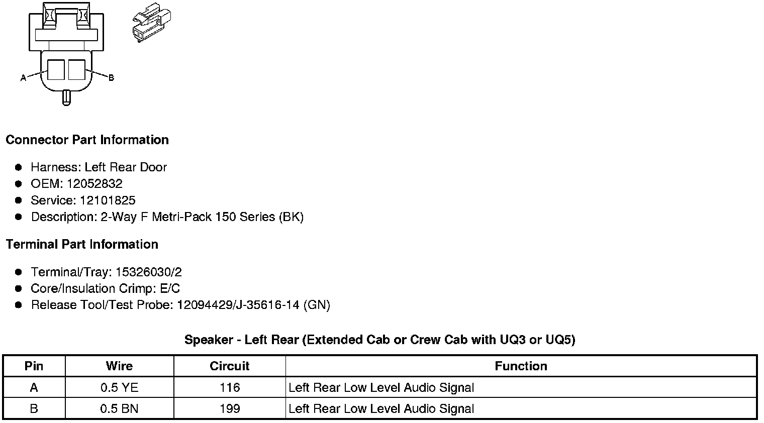 Speaker - Left Front Tweeter (except MEX)Speaker - Left Rear (Extended Cab or Crew Cab with UQ3 or UQ5)