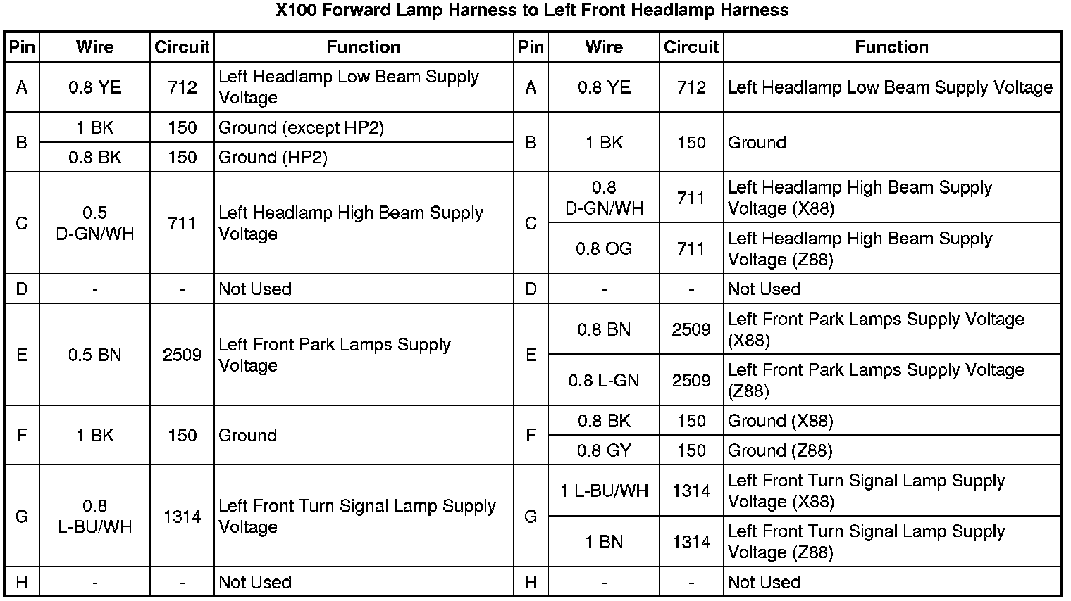 X100 Forward Lamp Harness to Left Front Headlamp Harness