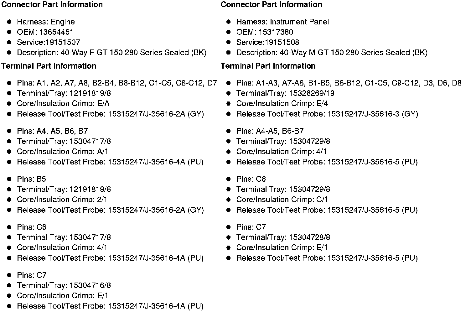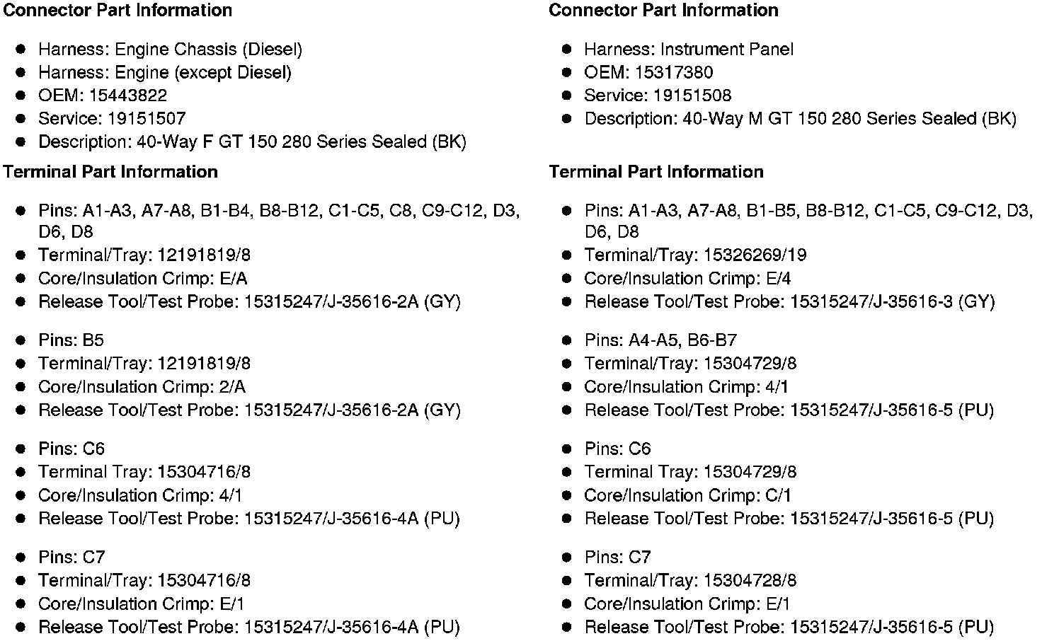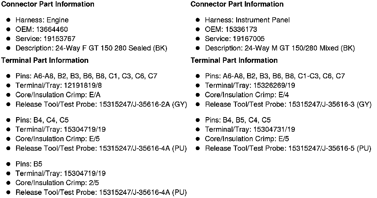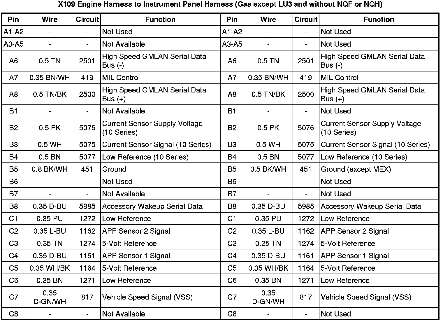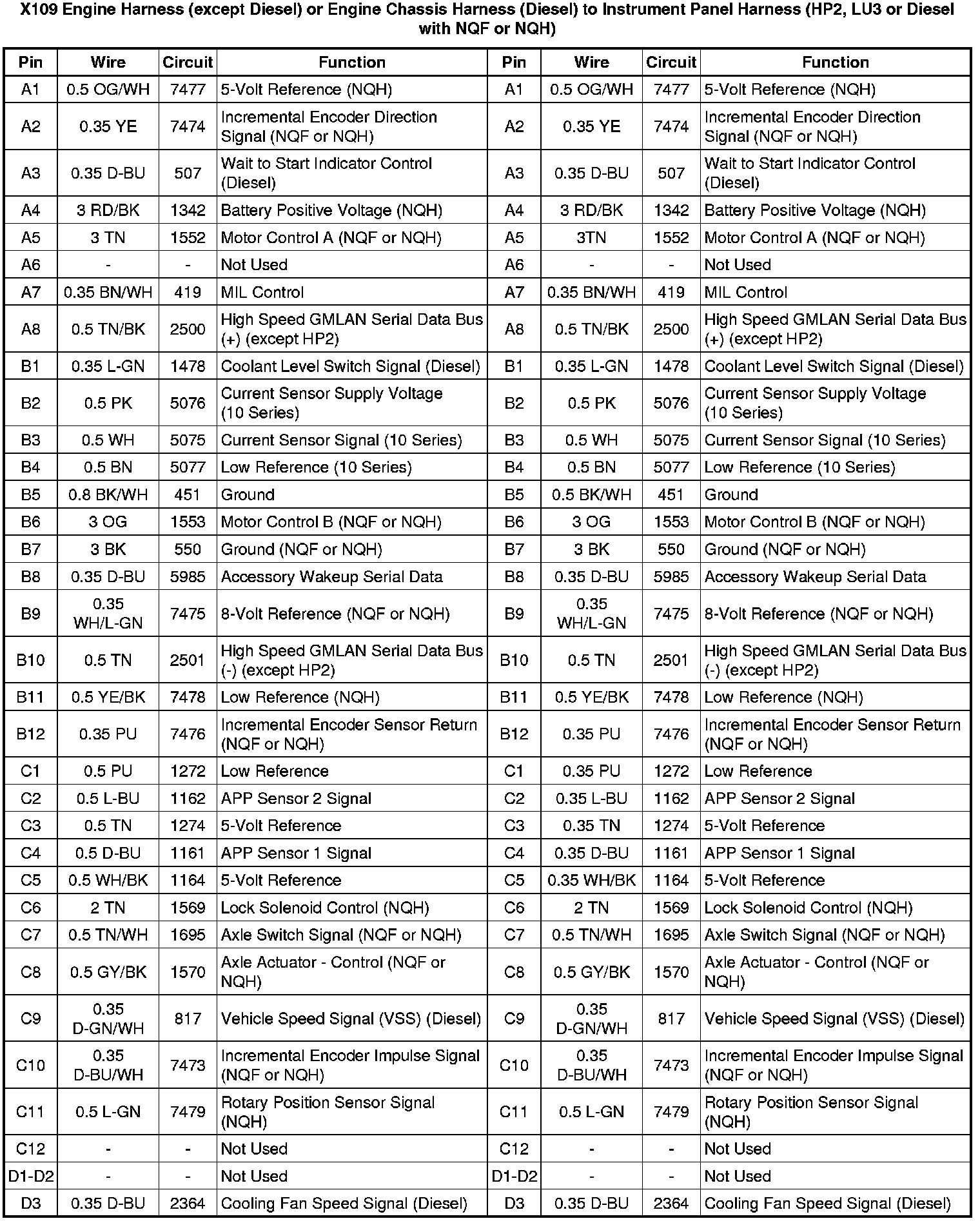 X109 Engine Harness (LU3) or Engine Chassis Harness (Diesel) to Instrument Panel Harness (LU3 or Diesel without NQF or NQH)X109 Engine Harness (except Diesel) or Engine Chassis Harness (Diesel) to Instrument Panel Harness (HP2, LU3 or Diesel with NQF or NQH)