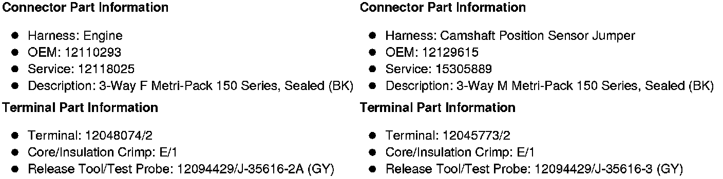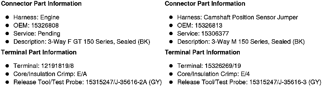 X112 Engine Harness to Camshaft Position Sensor Jumper Harness (LZ1, LY6, L96 or L9H)