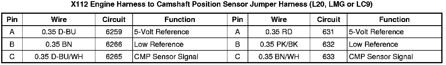 X112 Engine Harness to Camshaft Position Sensor Jumper Harness (L20, LMG or LC9)