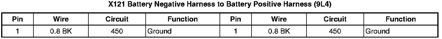 X121 Battery Negative Harness to Battery Positive Harness (9L4)