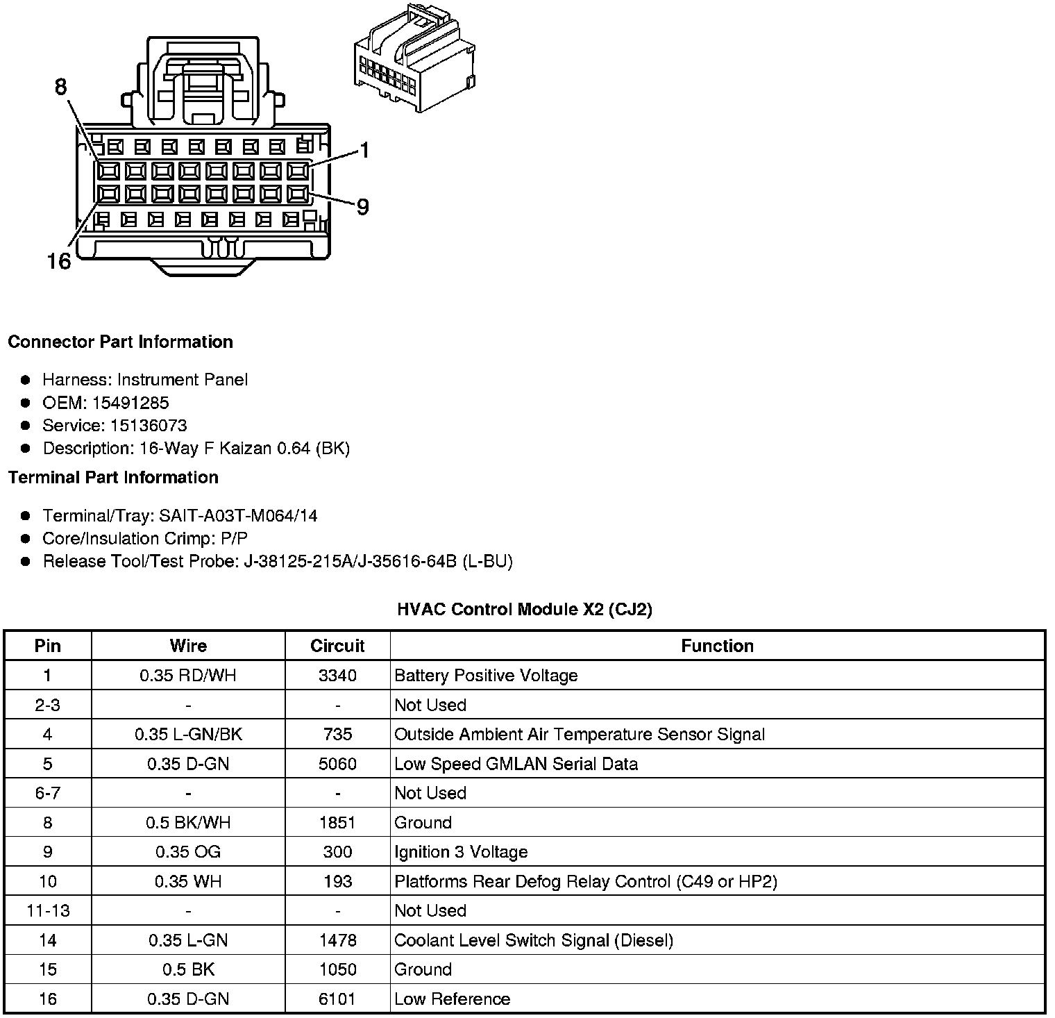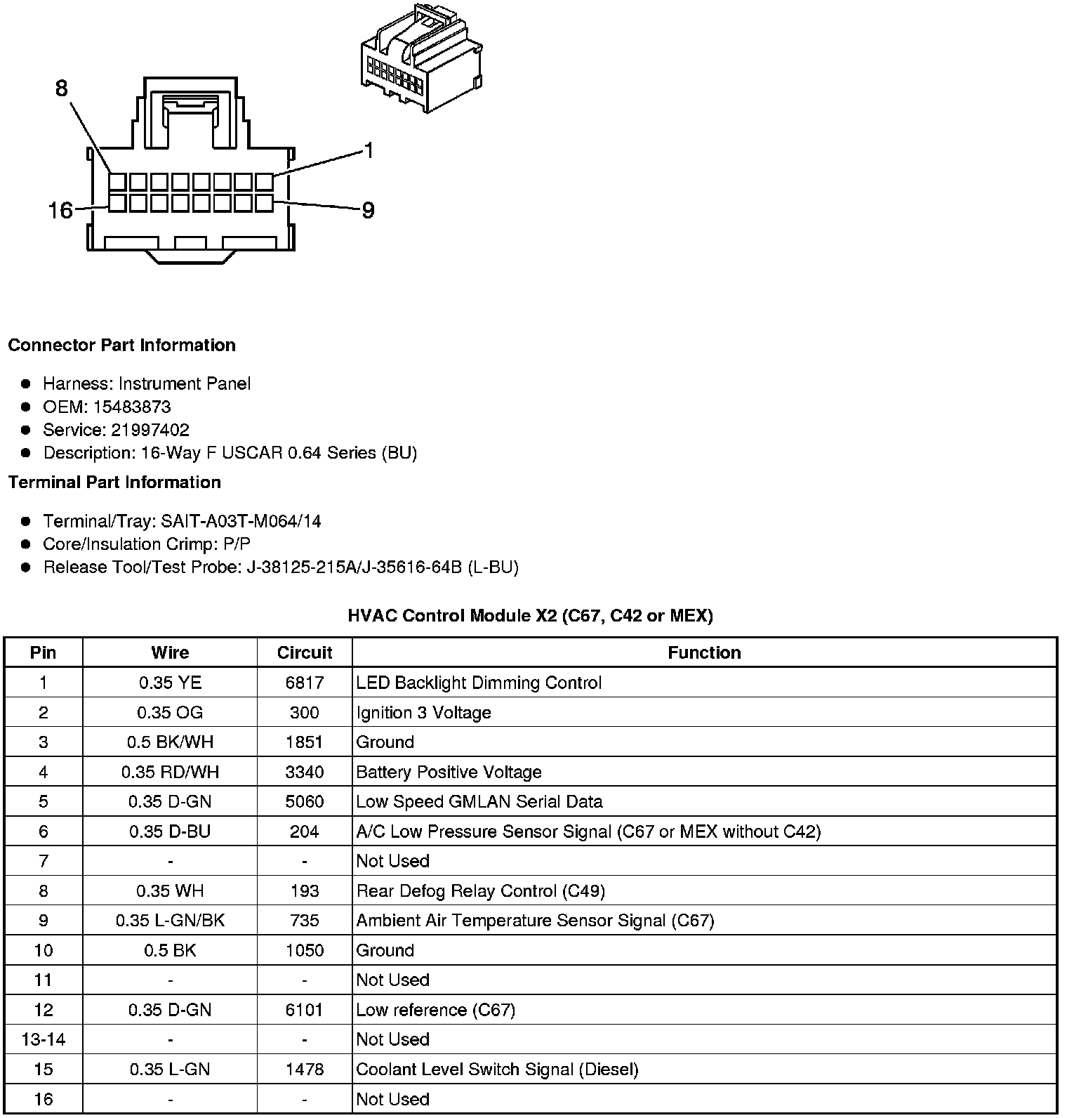 HVAC Control Module X3 (C67, C42, CJ2 or MEX)