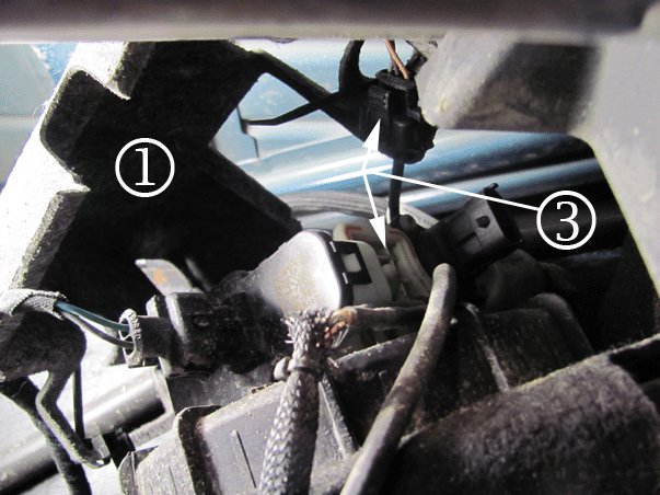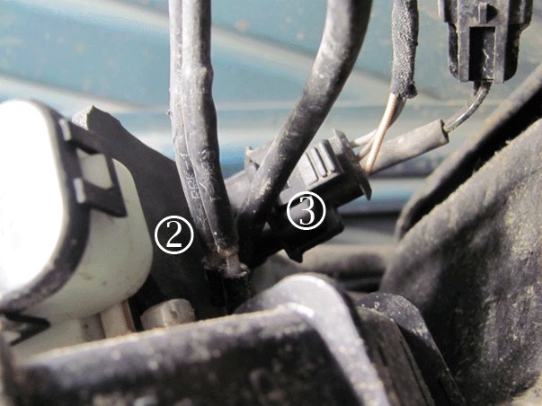 10. Install the reverting valve insulator gasket (2) in the area that the electrical connector (3) was disconnected.