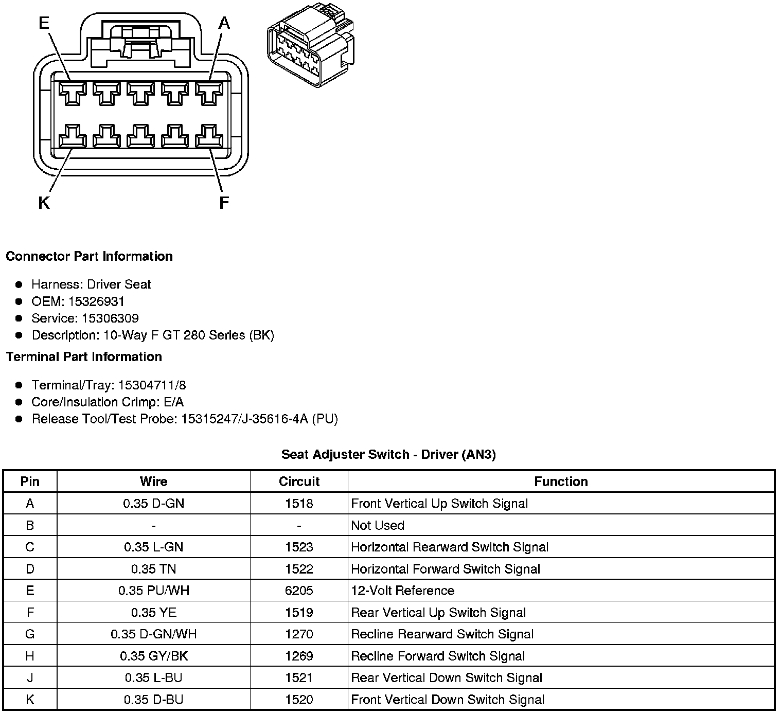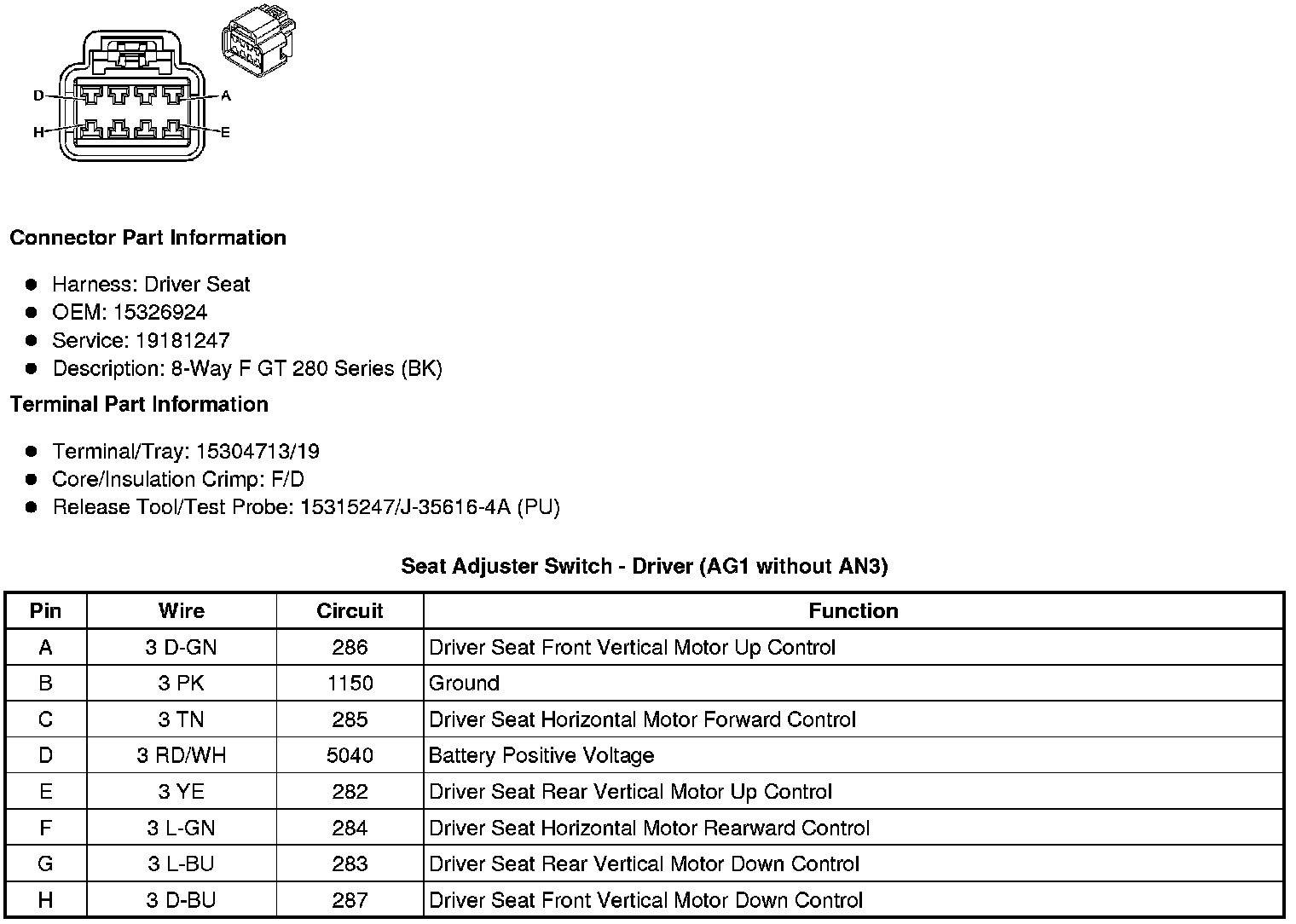 Seat Adjuster Switch - Driver (AG1 without AN3)